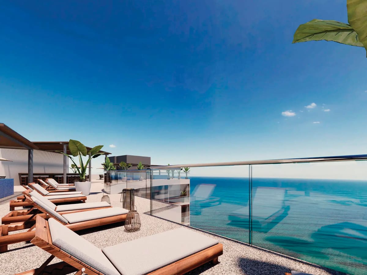 Its amenities include an infinity pool with jacuzzi, a central palapa, gym, snack bar, rooftop with jacuzzi, reading area and sky bar, all offering open views of the Mexican Pacific.