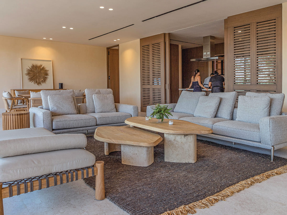 Las residencias ofrecen floor plans de cuatro a seis recámaras y villas de hasta siete recámaras, todas con vista frontal al océano y superficies a partir de 415 metros cuadrados. Su diseño interior enfatiza materiales nobles, amplitud, iluminación natural y una distribución pensada para la convivencia y la conexión con el entorno.