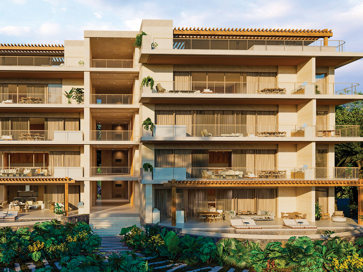 This luxury beachfront sanctuary offers direct access to a private beach and beach clubs that cater for all tastes. There is also a viewpoint from which to enjoy the views, as well as spaces designed to revitalize the body and soul, including a spa, temazcal, gym, juice bar and yoga deck. A business lounge, boutique café and active zones, including paddle and pickleball courts, complement the residential experience, providing safe and fun environments for the youngest members of the family.