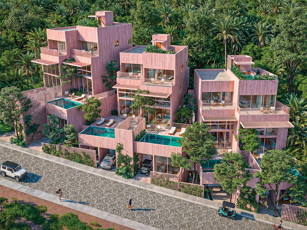 Each residence includes a master bedroom with a rooftop terrace, a private pool with jacuzzi in a large terrace and marble, granite and rosa morada wood finishes. In addition, homeowners will have the option to integrate an independent studio apartment for rental use to expand income potential.